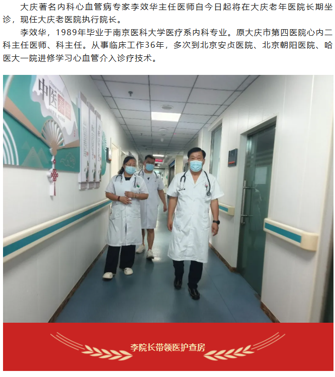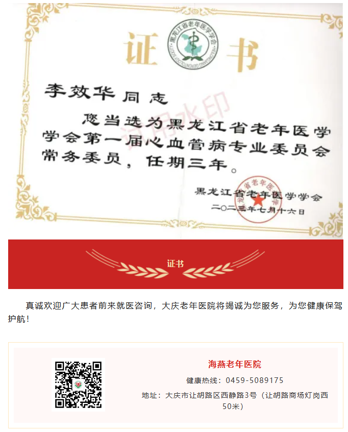 【医疗咨询】大庆著名内科心血管病专家李效华主任医师将与您共同守护您的健康